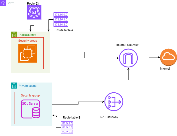 - Security groups will be used to control source ports & protocols for inbound and outbound rules